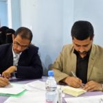 The workshop was being done by Mr. Saleh Adharab, the manager of quality and development. The goal of the training was to know the steps of editting and endorsing the plans, editting the terminal and annual reports, and editting and analyzing the terminal and annual reports. The training workshop was held in the general administration hall.
