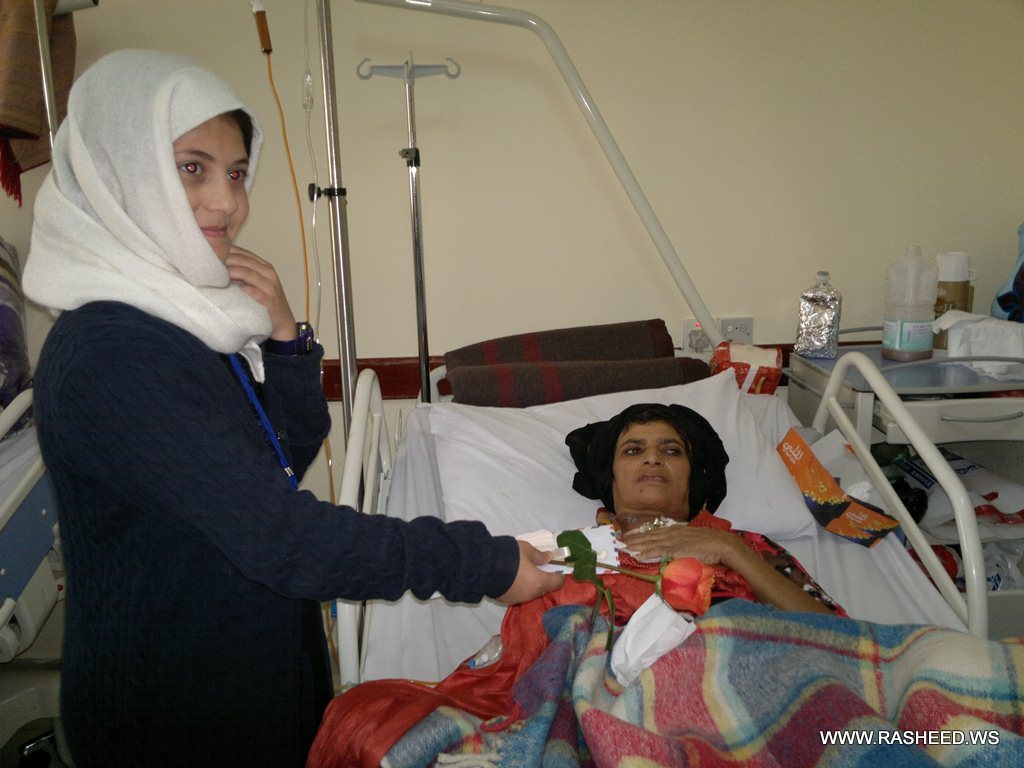 The group of “Omat Al-Ghaith” organized a trip to the oncology department at Al-Gumhori hospital. They distribute roses and cash to cancer patients. The aim was to urge the students on the importance of giving and charity and ease the pain of patients and help them. The trip was Tuesday 3/12/2013