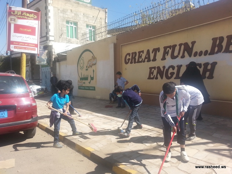 In collaboration with the Scouts and Girl Guides group, and all the students and teachers in the English branch, the activity team participated in activation the cleaning day in the school where all pupils and staff cooperate in cleaning classrooms and school hallways and streets adjacent to the school and this was in response to the national campaign which is sponsored by the Secretariat of the capital. This event was on Thursday 12/12/2013.