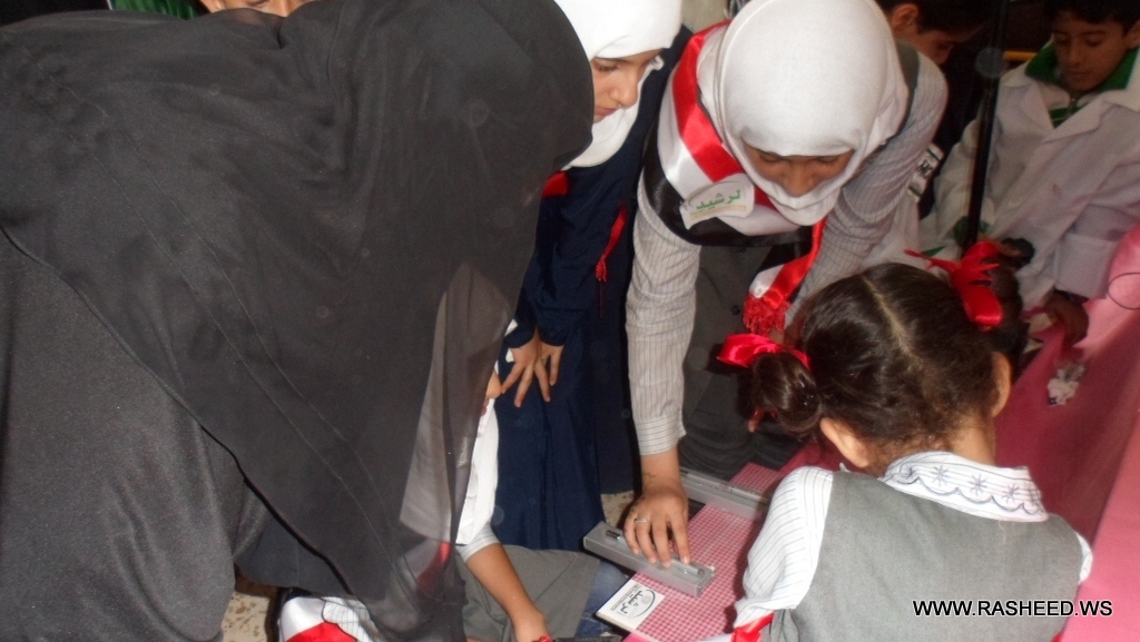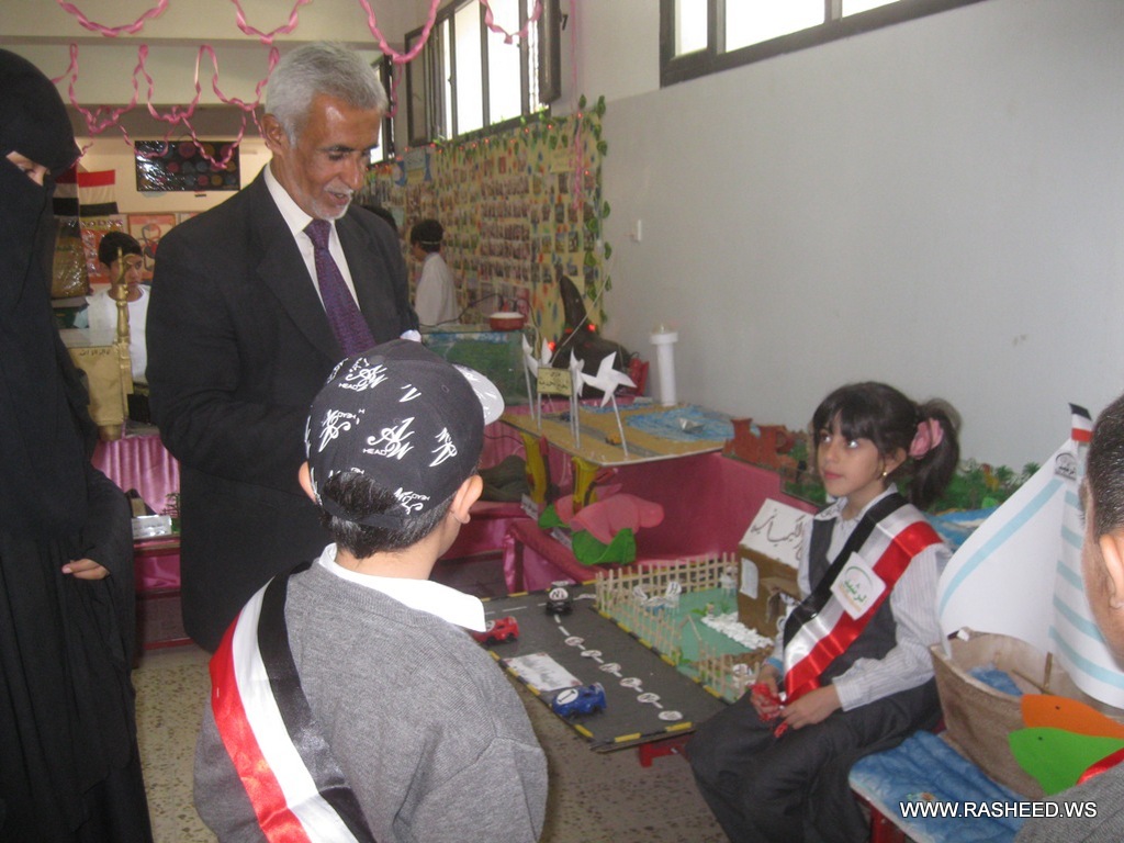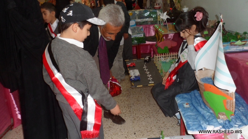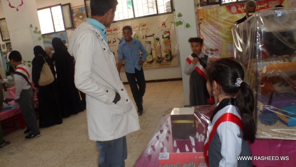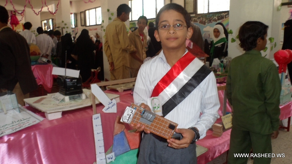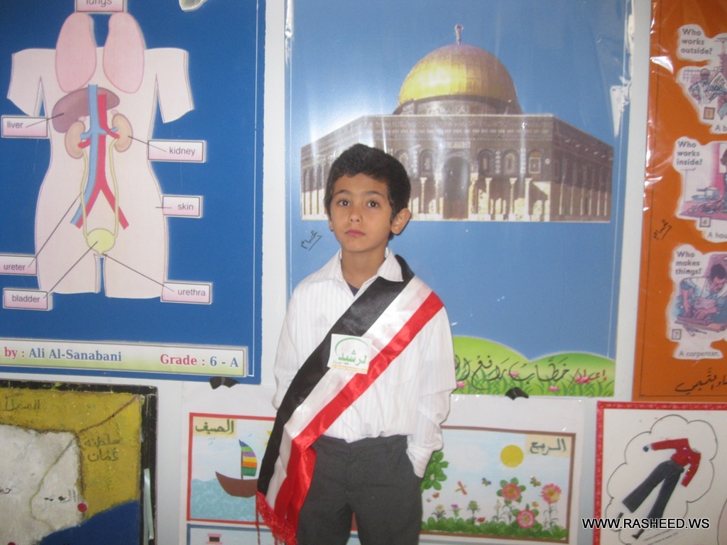 Ar-Rasheed activity team, the administration of Al-Sabeen educational zone and Al-Salal school administration have organized a fair for the educational materials which have been made by the students. The school’s participation was in the opening of the exhibition which was held in the Al-Salal school. The fair was attended by the director of the educational office and the director of Al-Sabeen educational zone and other people of the Education Ministry. The event was Saturday 4/5/2013.