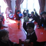 The teachers made parties for their students. Then they distributed the gifts to the pupils and gave them the exams results. The even was on Sunday 30/12/2012 in the K.G building.