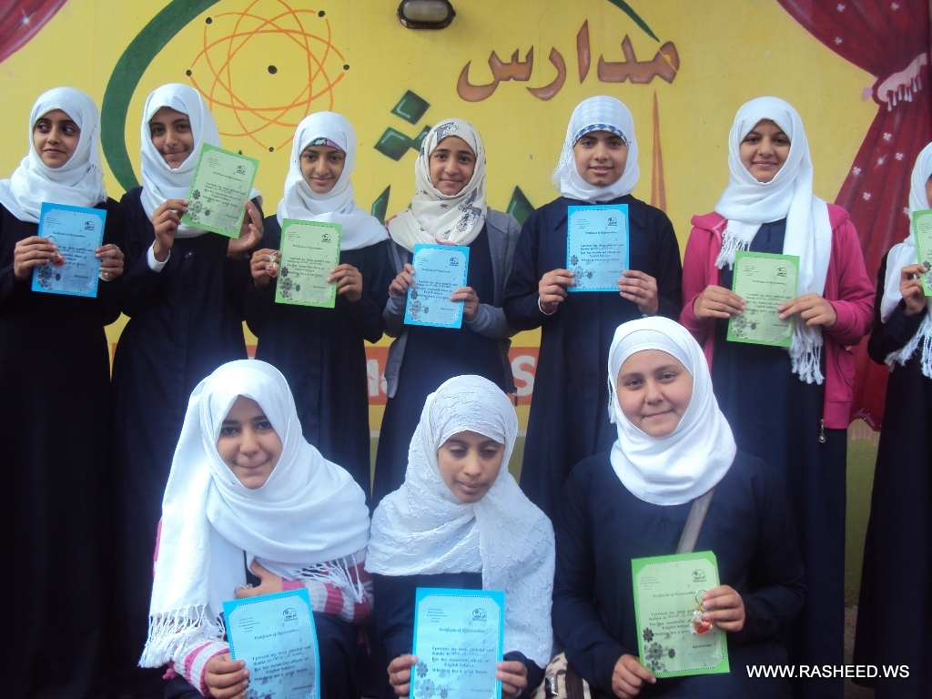 Grade 6 and 7 teacher honored the students for their efforts and the excellence the exams. Ms Afrah Haidar has honored her students for hardworking in grade 6 and 7. The honoring was in the Girls branch on Wednesday 27/3/2013.