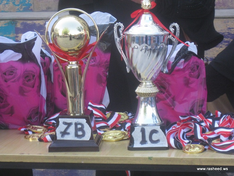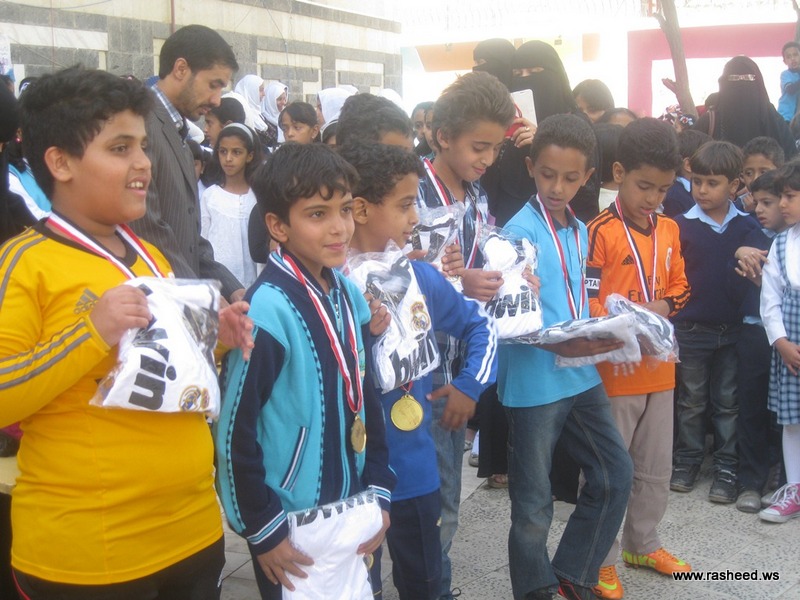 The PE teacher Ms. Taghreed Al-Salmi has honored the winners in the football league from grade 1 to 4 and basketball league for girls and the winner was class 7B. In the fast running competition the winners are: