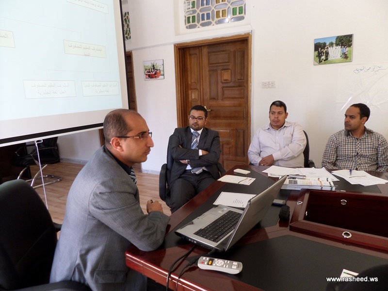 It was held in the general administration building the second periodic meeting for educational supervisors in the presence of the General manager of schools Mr. Khaled Qahtan and director of the educational supervising and training unit Mr. Mukhtar Al-Hamadi. At the meeting Mr. Al-Hamadi presented what has been done during the first semester, then the participants discussed the plans and supervision mechanism for the second semester. This was on Saturday 8/3/2014.
