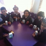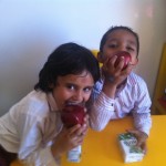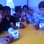 On Monday 12/03/2012 the K.G teachers arranged an activity to learn the students. What the healthy food is? and they give the students milk and apples then explain for them the benefit of the milk in building healthy body.