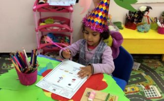 Ms Sundos Arradhi, the first teacher of KG , English branch, had prepared the classroom in order to let her students have …