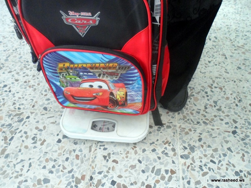 Today Ms. Farah al-Saadoun, Principle of the English branch passed by the classrooms, and weighted the bags of the students after receiving …
