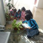 Ms. Monerah Al-Mahdali, science teacher, English branch, explained a lesson about plants’ parts using a new method. Students, grade four, had to deal with plants and write a report about their understanding.