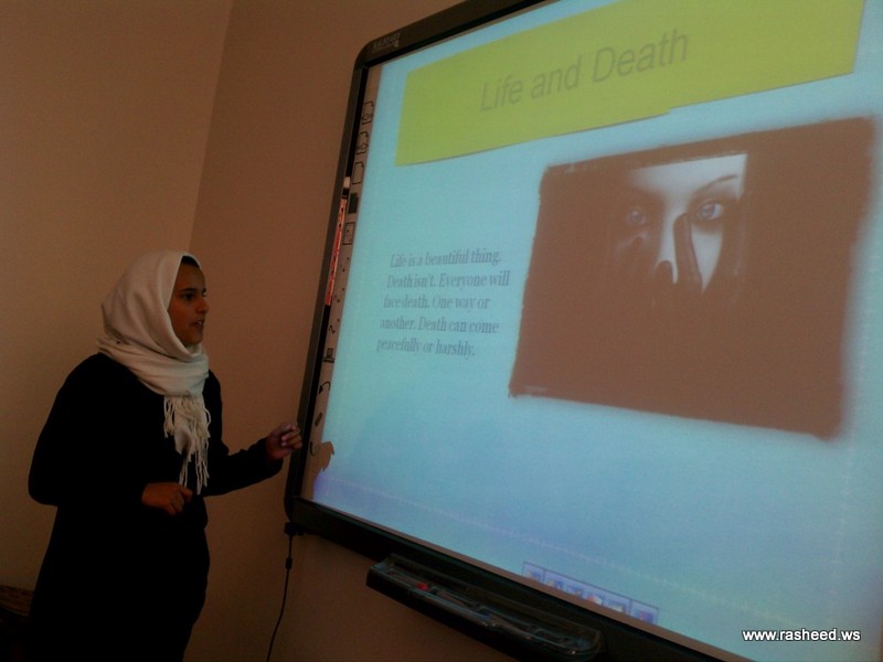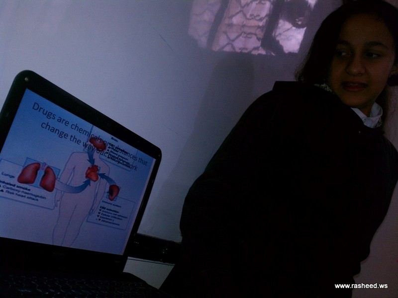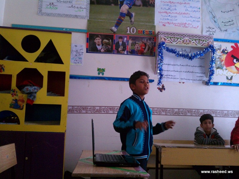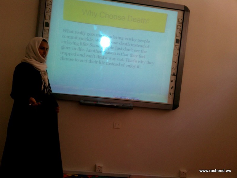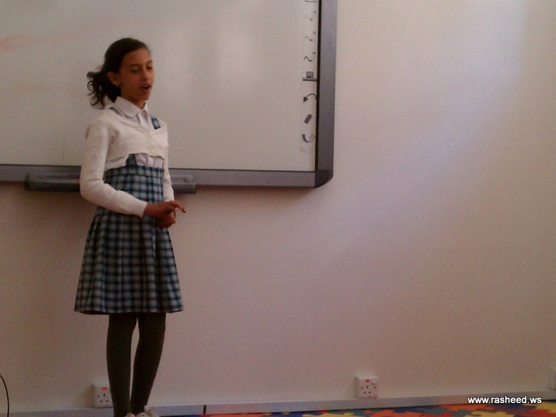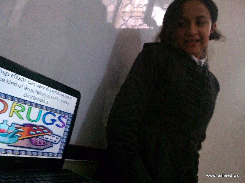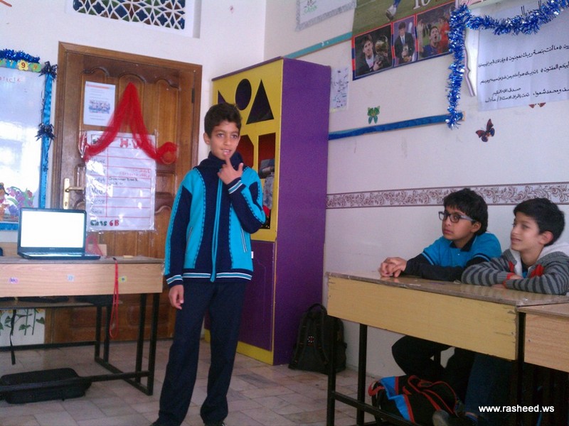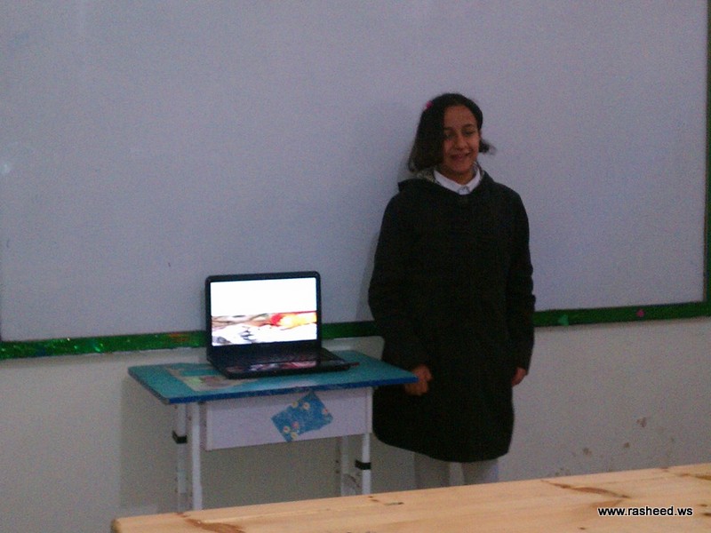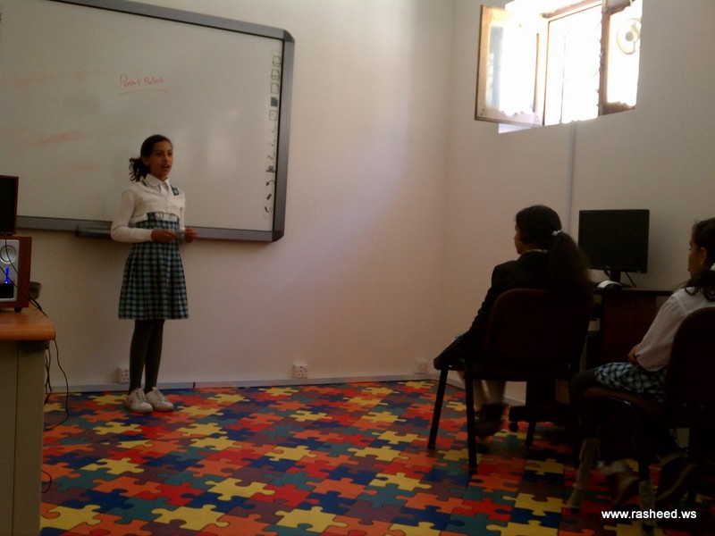 The students of sixth grade made a presentation on various topics as a part of classroom activities for English language subject. the activity showed the Creativity of the students in the use of means to view their topics and they received a great admiration and appreciation from their teachers. The aim was to Instill self-confidence and to practice the language and acquire the skill of presentation. The activity was on Tuesday 24/12/2013 under the supervision of Ms. Hanan Saree the English language teacher.