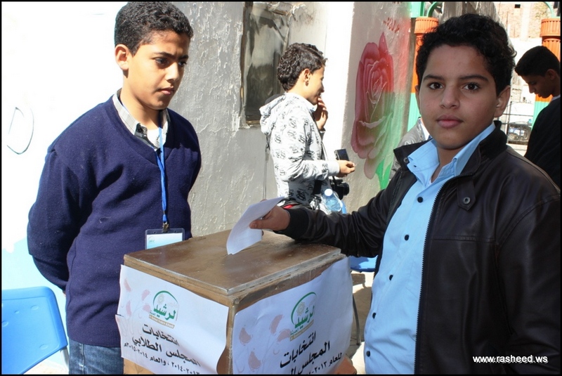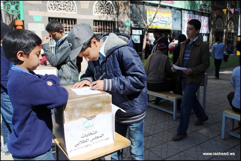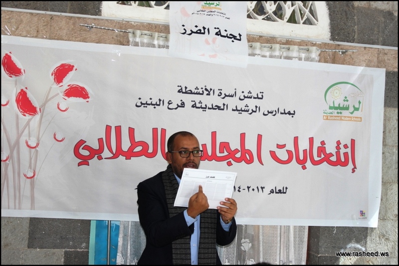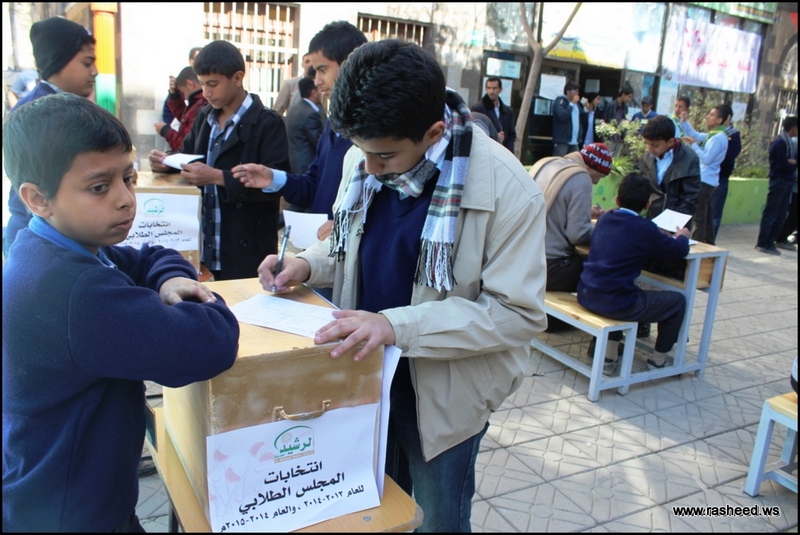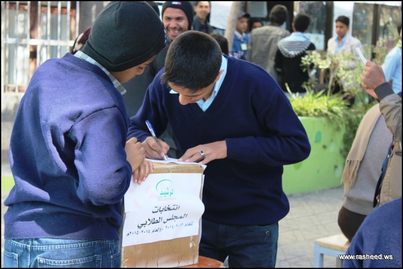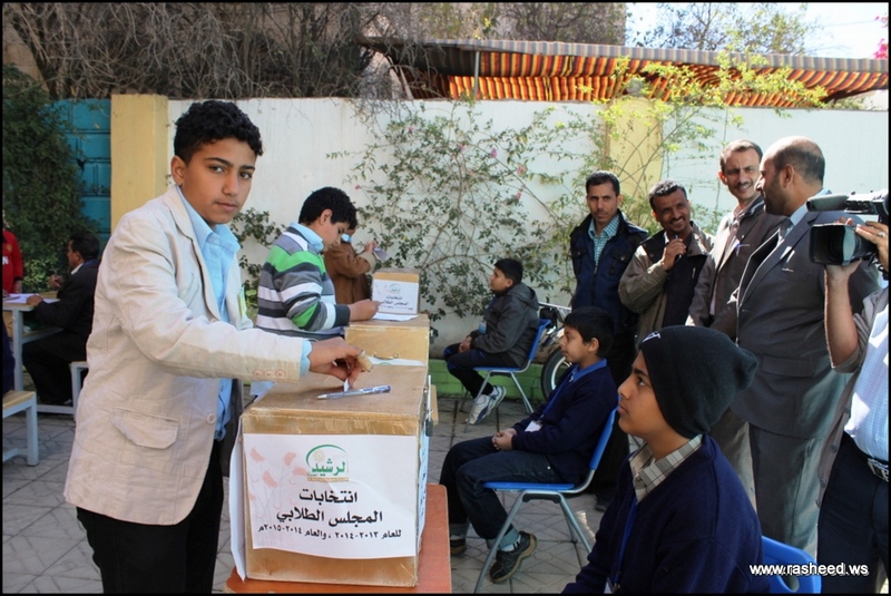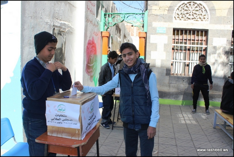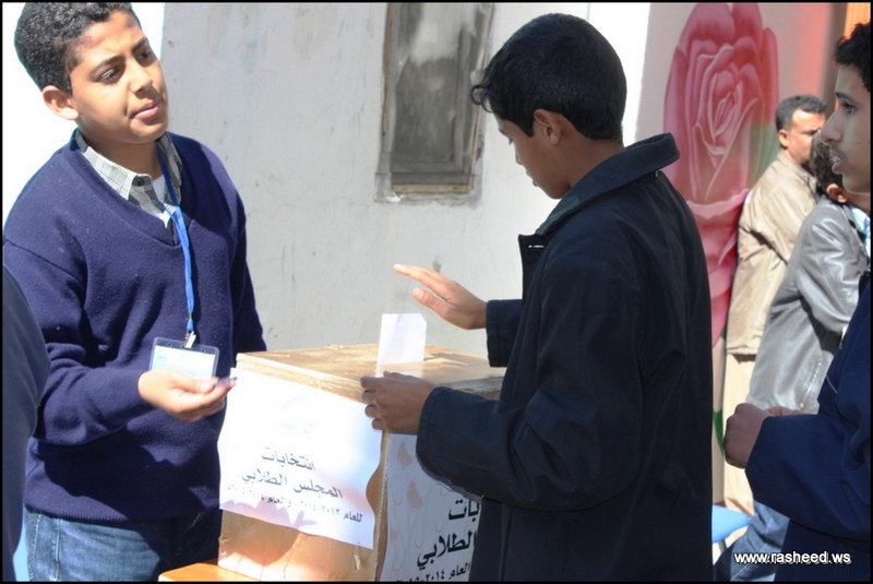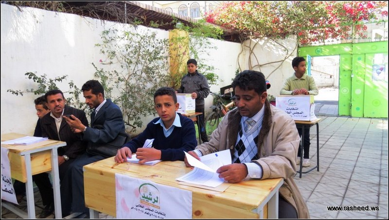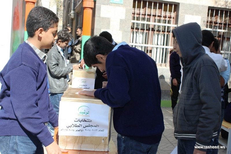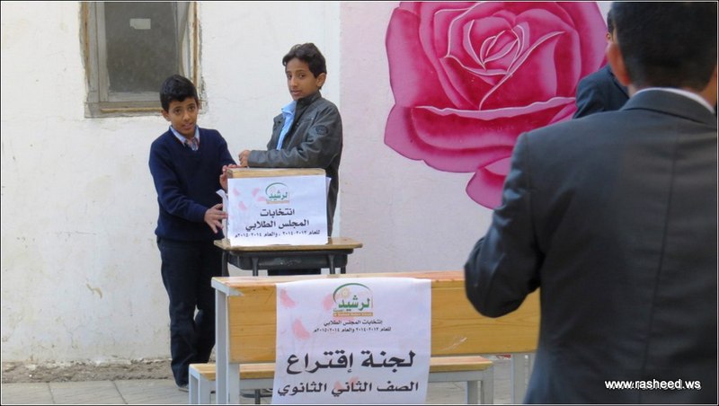 In Ar-Rasheed school the boys branch, the students elected their student council. The event was presented by Mr. Faisal Al-Zubairi chairman of Ar-Rasheed educational service company and Mr. Yahya Al-Shatwani the deputy of Maeen educational district and Mr. Mohammed Al-Safani the head activities section in Maeen district. The election day was the day of closing several events which aimed to educate the students of the importance of active participation in decision-making in a free and democratic way.