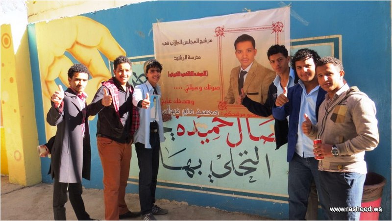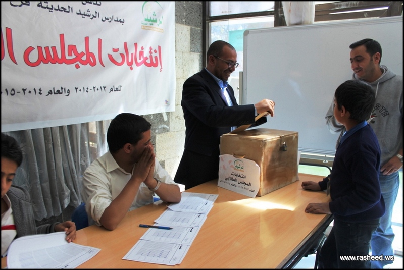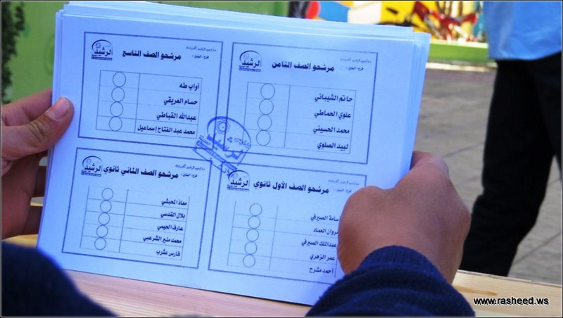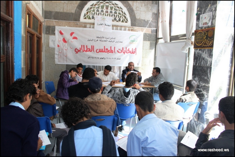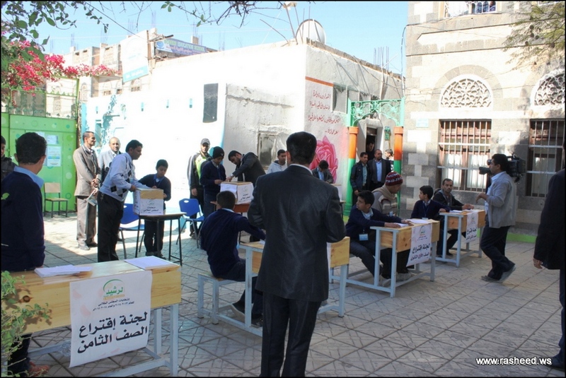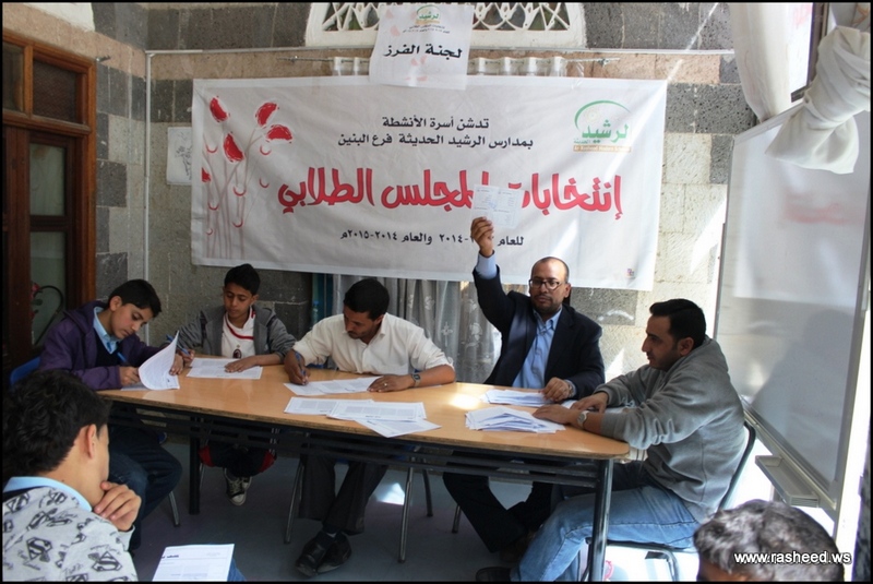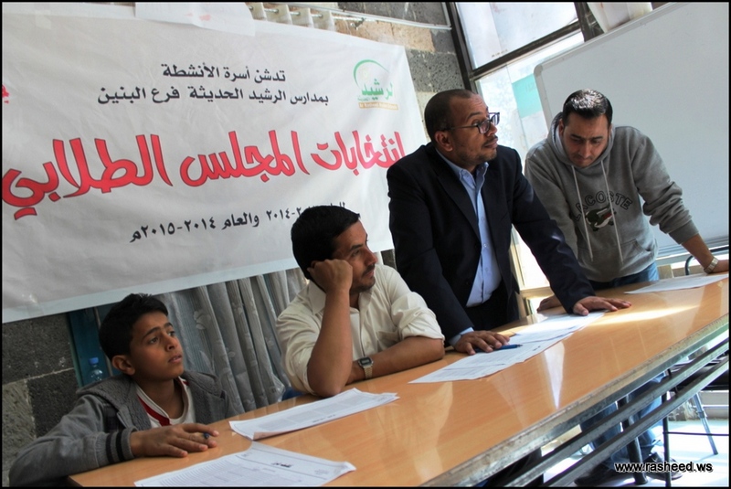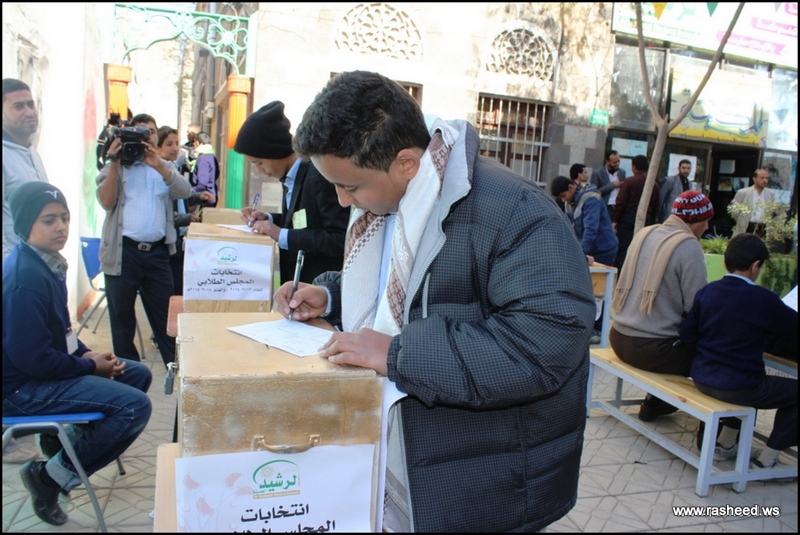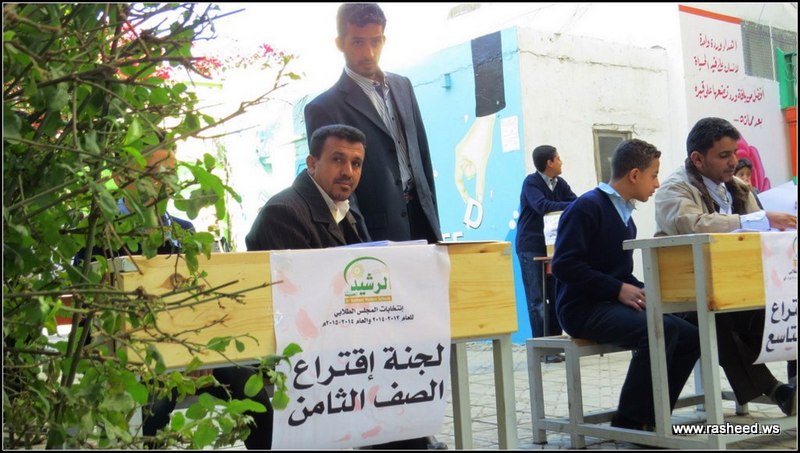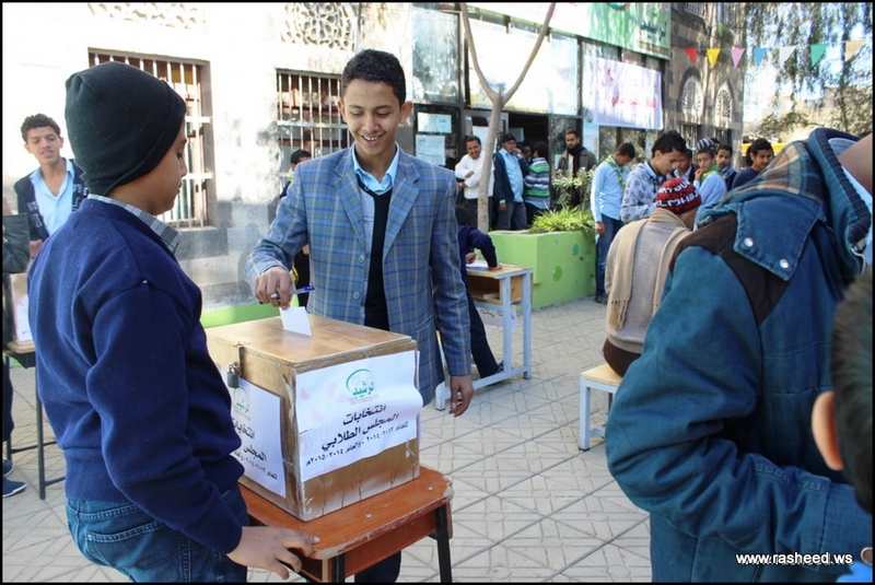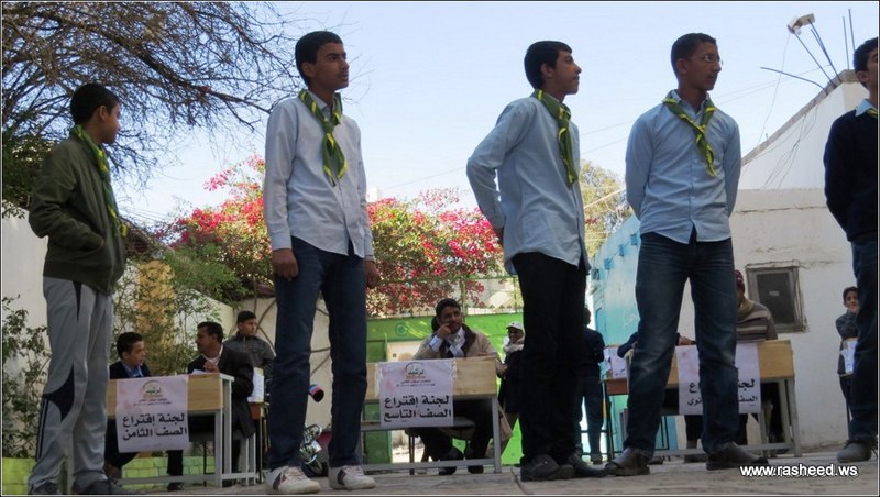 In Ar-Rasheed school the boys branch, the students elected their student council. The event was presented by Mr. Faisal Al-Zubairi chairman of Ar-Rasheed educational service company and Mr. Yahya Al-Shatwani the deputy of Maeen educational district and Mr. Mohammed Al-Safani the head activities section in Maeen district. The election day was the day of closing several events which aimed to educate the students of the importance of active participation in decision-making in a free and democratic way.
