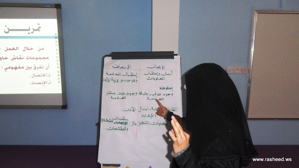 Where the course focused on communication skills , elements and components, and the basics of mental behavioral dimensions in dealing with the public and the analysis of patterns of dealers. As it explained the concept of quality and service, and the difference between service and Item . It also explained the concept of the client and its importance and its types , and the scientific basis for telephony .