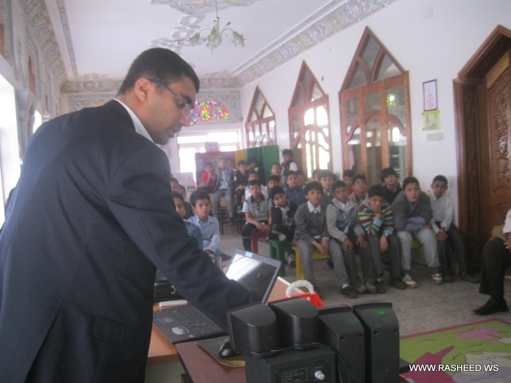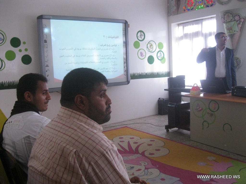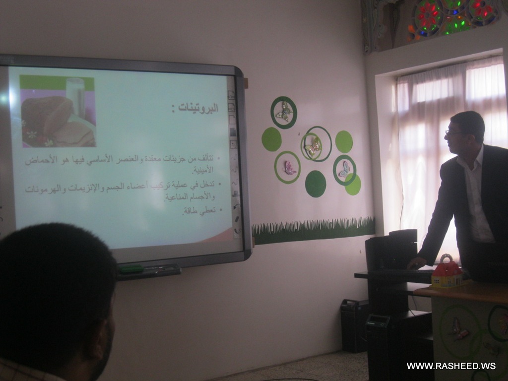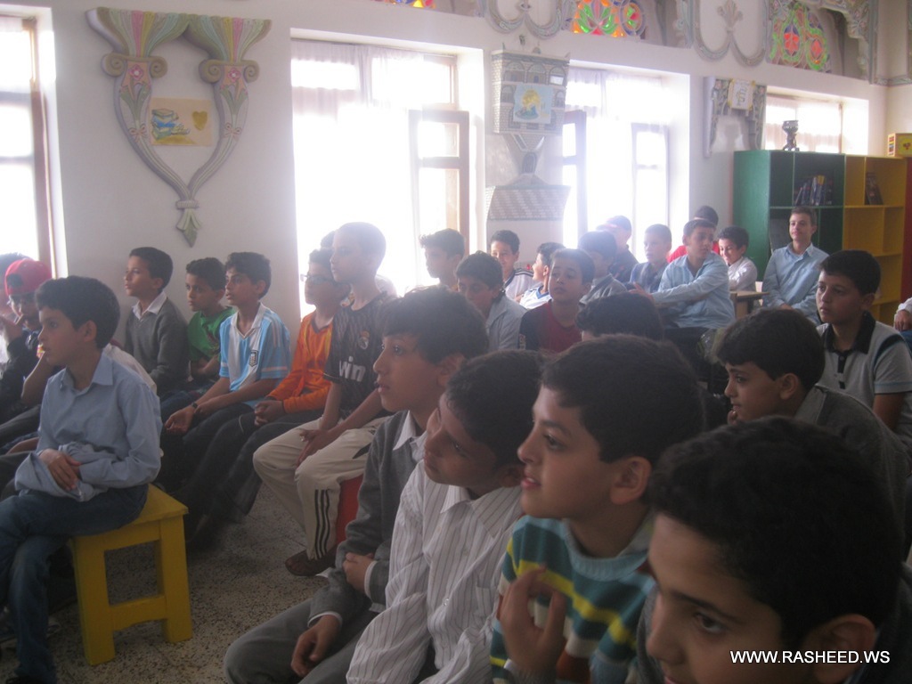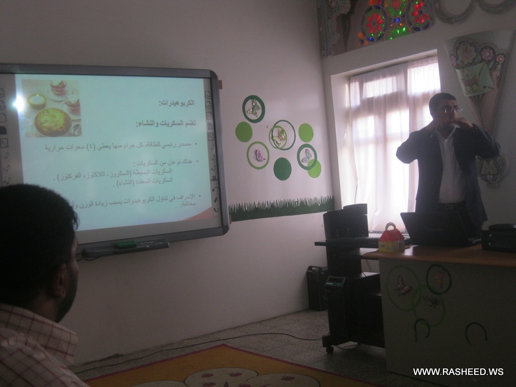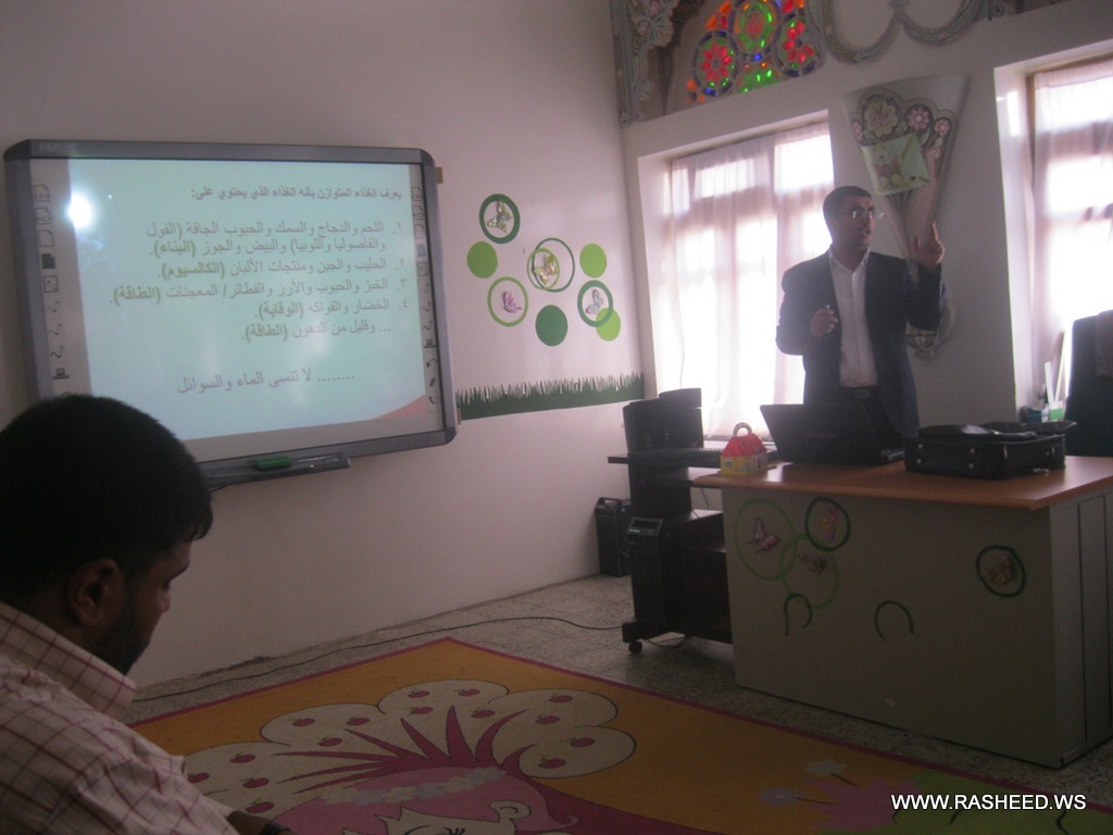 The school administration and healthy teacher a typical class for the students in grades 4,5,6 and 7 (boys). It was aimed to learn the pupils what healthy food is? And what is the benefit of healthy food for building body. A doctor has been attended from the university hospital of science and technology and presented a workshop about the healthy food. The event was on Tuesday 23//4/2013 at the English school.
