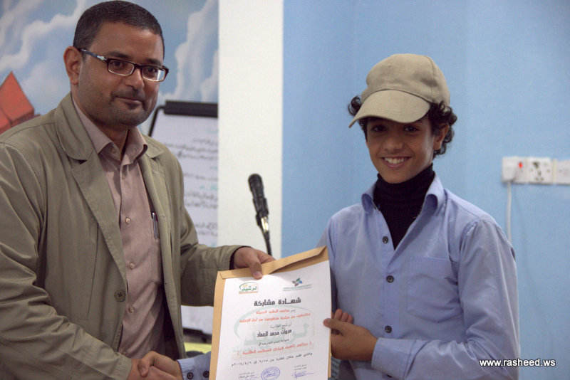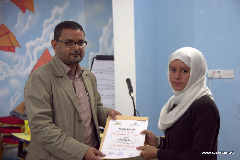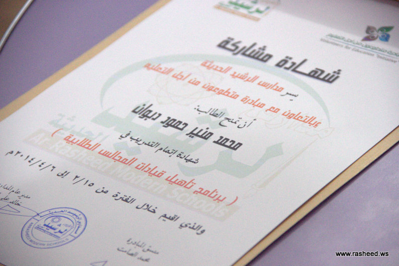 The training program for students councils in the branches of the schools has been concluded last Sunday 6/4/2014. At the end of the workshop, the certificates have been distributed for participants by the general manager of the school Mr. Khaled Qahtan who talked to his students about the importance of students council at school. It is worth mentioning that the program ran from mid-February to early April.The program was presented by Volunteers for education “Initiative”.