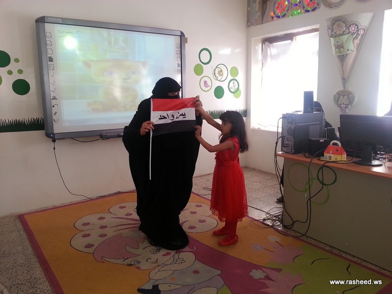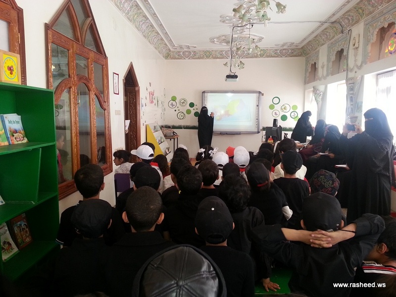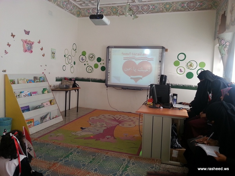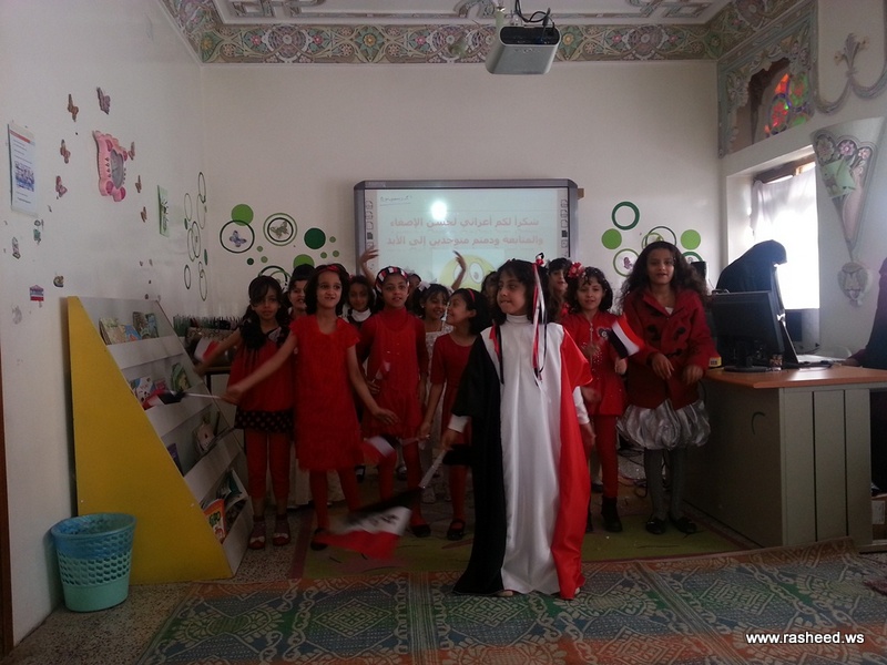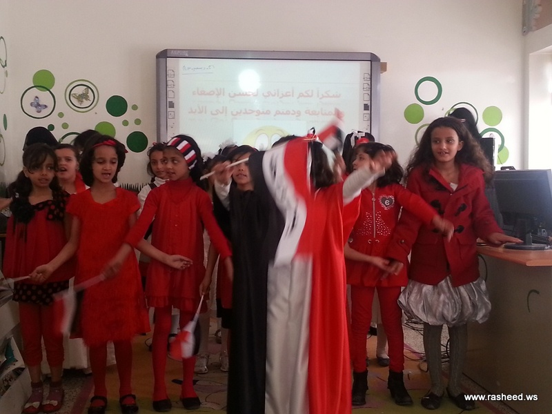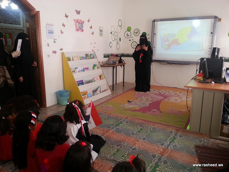 Teacher Basmah Al-Manee has explained a lesson for the students of grade 3 and it was about the Yemeni Unity. She used a variety of educational tools such as interactive board and singing. At the end of the class there was a party and cakes were distributed on students and teachers. The lesson was aimed to promote the concept of unity among students and to deliver information in a fun and simple way. The activity was on Monday 30/12.2013.