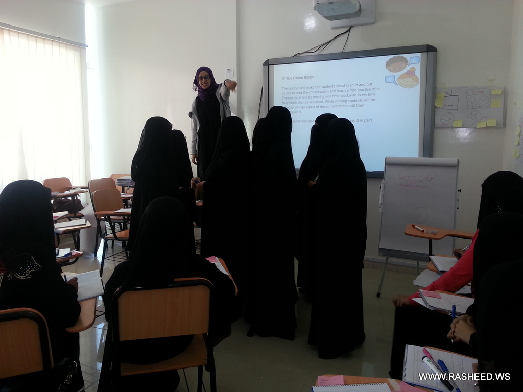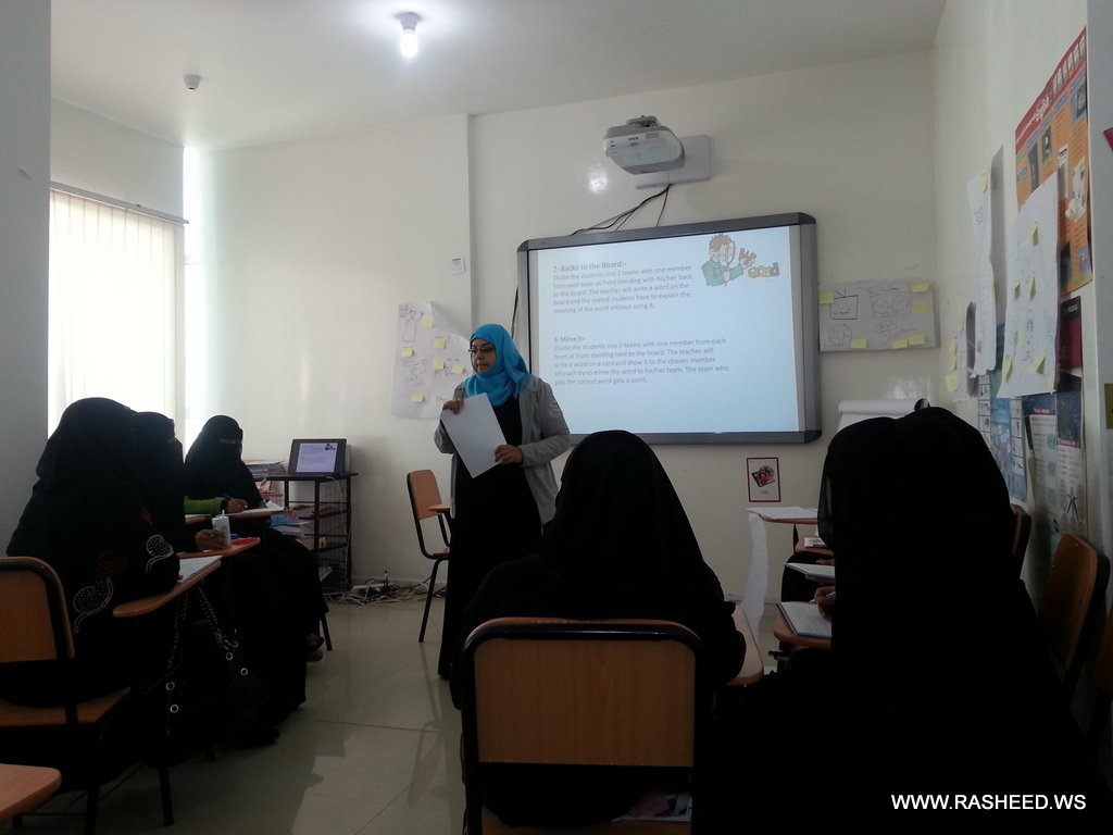 In cooperation with Yemen Bookshop, Ar-Rasheed school organised a training workshop which was held in Yemen Bookshop hall and it was about the four skills of teaching English. The training lasted for two days on Saturday 14/12/2013 for Let’s Go Teachers and on Saturday 21/12/2013 for Family & Friends Teachers. The workshop was presented by Ms. Edhah Al-Maghafi and Ms. Lubna the trainers of Yemen Bookshop.