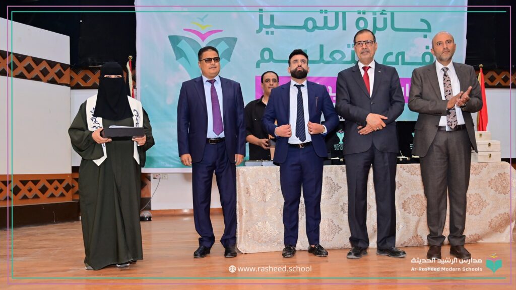 في حفل بهي وبحضور متميز كرمت مدارس الرشيد الحديثة المشاركين والفائزين في جائزة التميز للتعليم، وفي الحفل تحدث الأستاذ الدكتور عبداللطيف حيدر رئيس جامعة الرشيد الذكية نائب مجلس أمناء الجائزة عن دور مثل هذه المبادرات في تحسين العملية التعليمية، وتطوير أداء المعلمين، مشيرًا إلى أهمية التطوير المستمر في الحقل التعليمي لأنه مفتاح نهضة الأمم.
