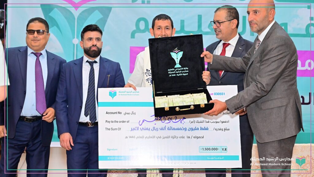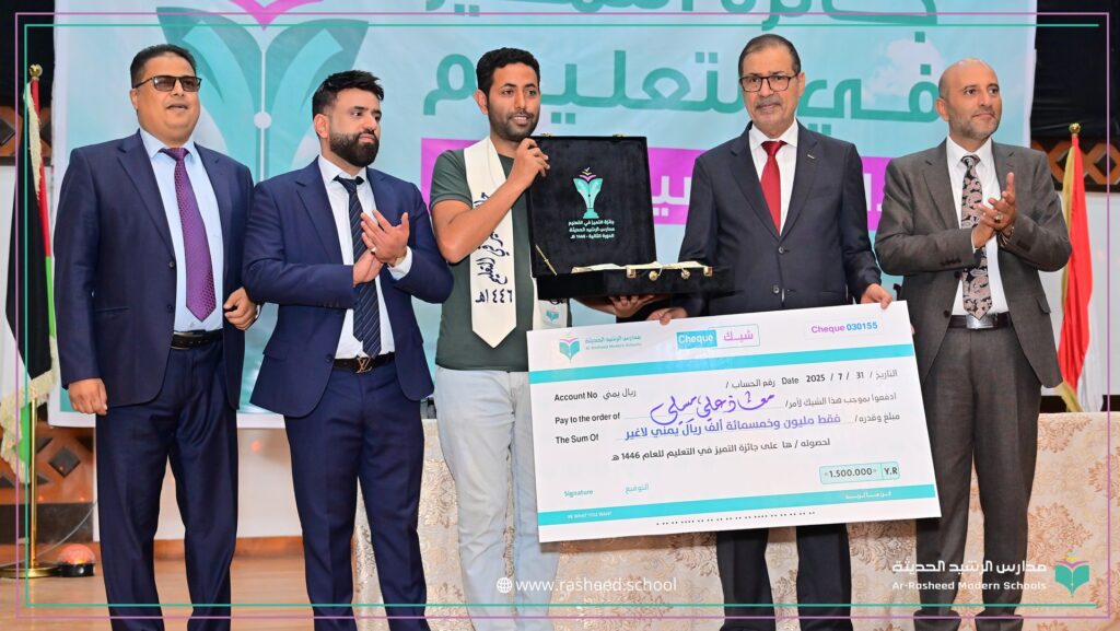 من جانبه شكر الأستاذ محمد القليصي عضو الأمانة العامة للجائزة المعلمين والمعلمات المشاركين في الجائزة مشيدًا بدور الكادر الإداري والتعليمي في تحقيق الأهداف المرصودة، والتي أدت إلى حصول الرشيد على أكبر عدد من أوائل الجمهورية في الشهادتين الأساسية والثانوية على مستوى اليمن.